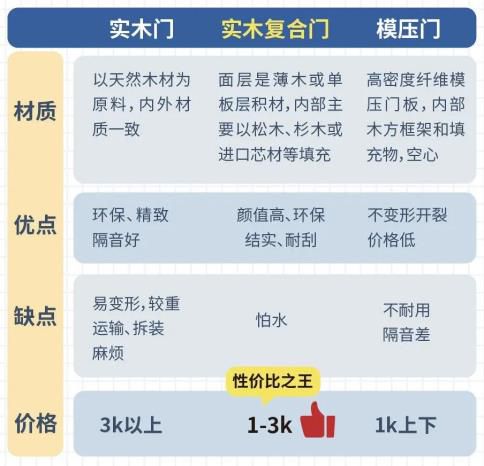 不同品種的木門因為材質的差別,優毛病不一,價錢差別也較大(對照見下圖↓↓)