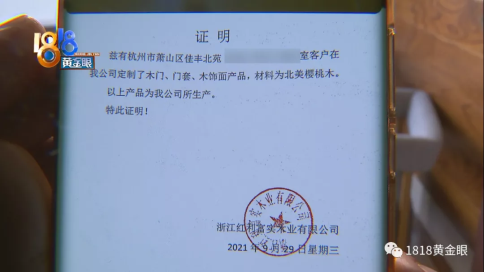 陳老師說,自身特意訂制了“高質木門”,沒想到由于木門,耽誤了裝潢工期,一家人還得持續租住在里面。搜到杭州璟望府全屋訂制家居店,蘇老板說,她是根據陳老師的需要從廠家拿貨的,她供應了一份廠家出具的證實,上面寫著陳老師在企業訂制的木門門套木飾面產品均為北美櫻桃木,且均在企業制造,上面蓋了浙江紅利富實木業有限企業的章。蘇老板也供應了訂貨單,訂貨單上顯現材質都為北美櫻桃木。如此木門開裂是什么原因呢?