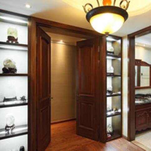 實木復合門:門芯和內部構造是由其余木料或密度板制成,唯獨外表是低檔木料并噴涂油漆。通常為三層復合構造:門中心骨架(基材)為集成材(通常為松木或杉木);門芯骨架為實木網格或密度板網格,雙方貼中密度板;外表貼低檔實木木皮(如黑胡桃、紅櫻桃、花梨、柚木、沙比利等)。門的外表通常用的是聚酯漆。