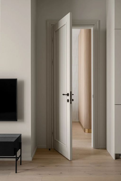 極致簡約的造型,高度的色彩凝練,將木門作為空間設(shè)計(jì)的入口,讓木門、墻板、家具飾面效果一體化,是家居空間的點(diǎn)睛之筆。